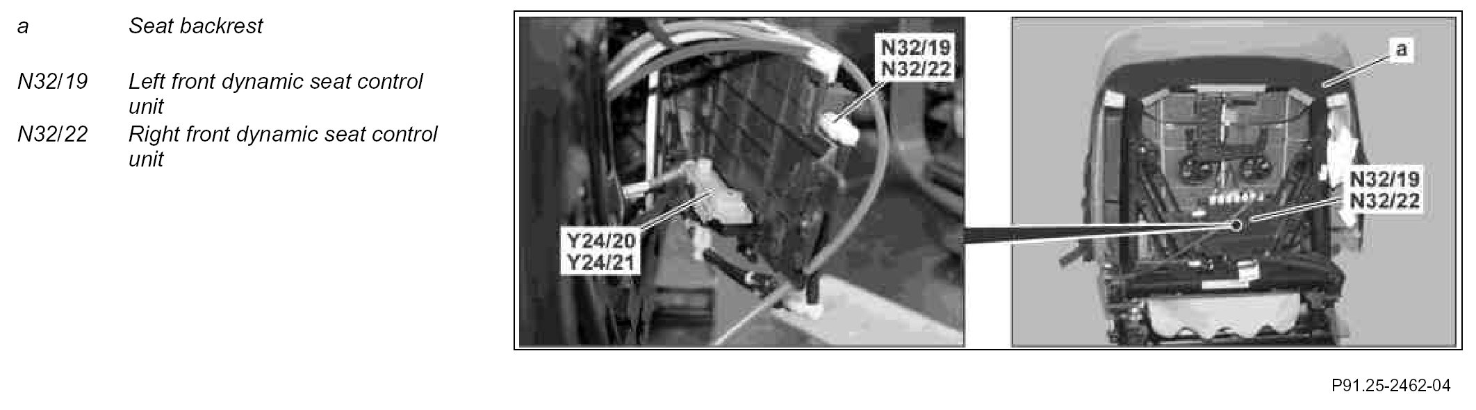 - Communication via the interior CAN (CAN B) with the left front seat control unit (N32/1) or right front seat control unit (N32/2)