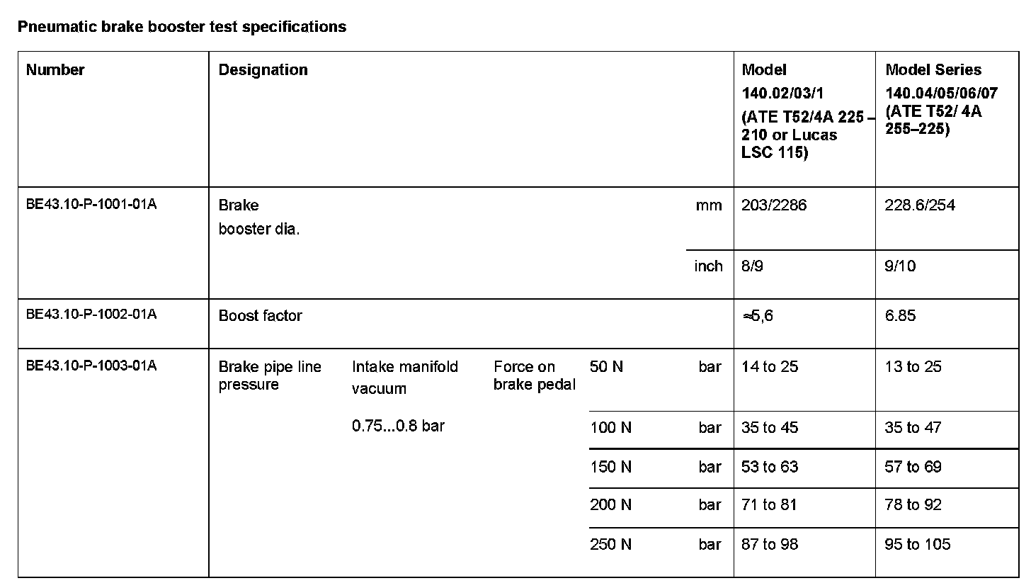 Pneumatic Brake Booster Test Specifications: