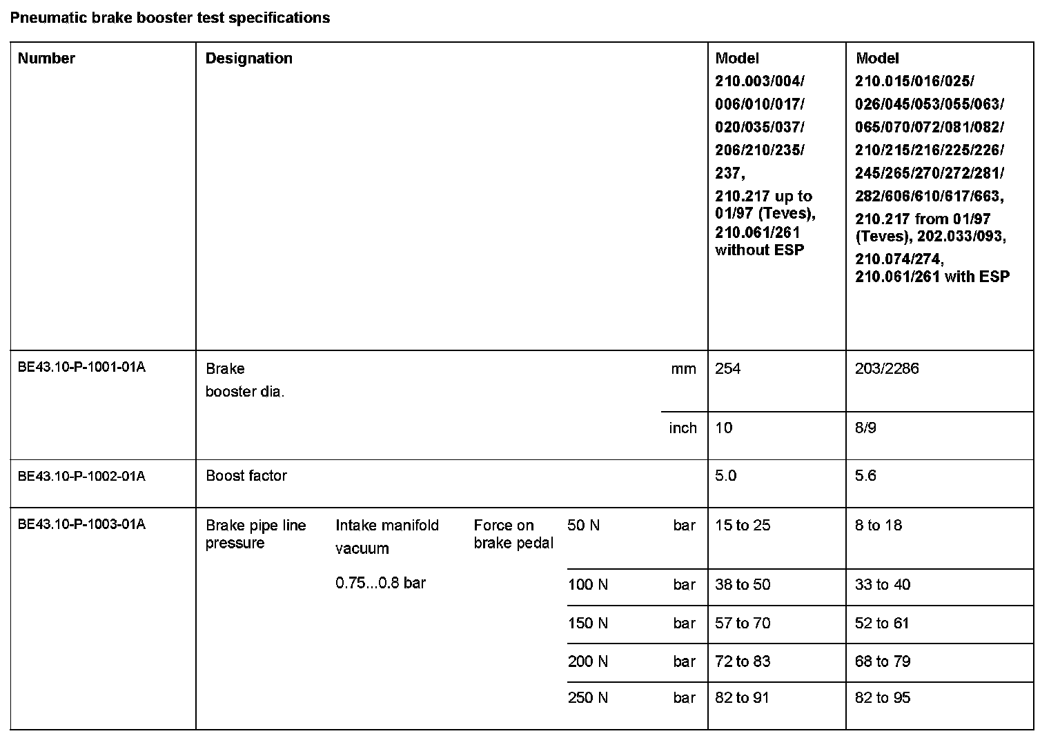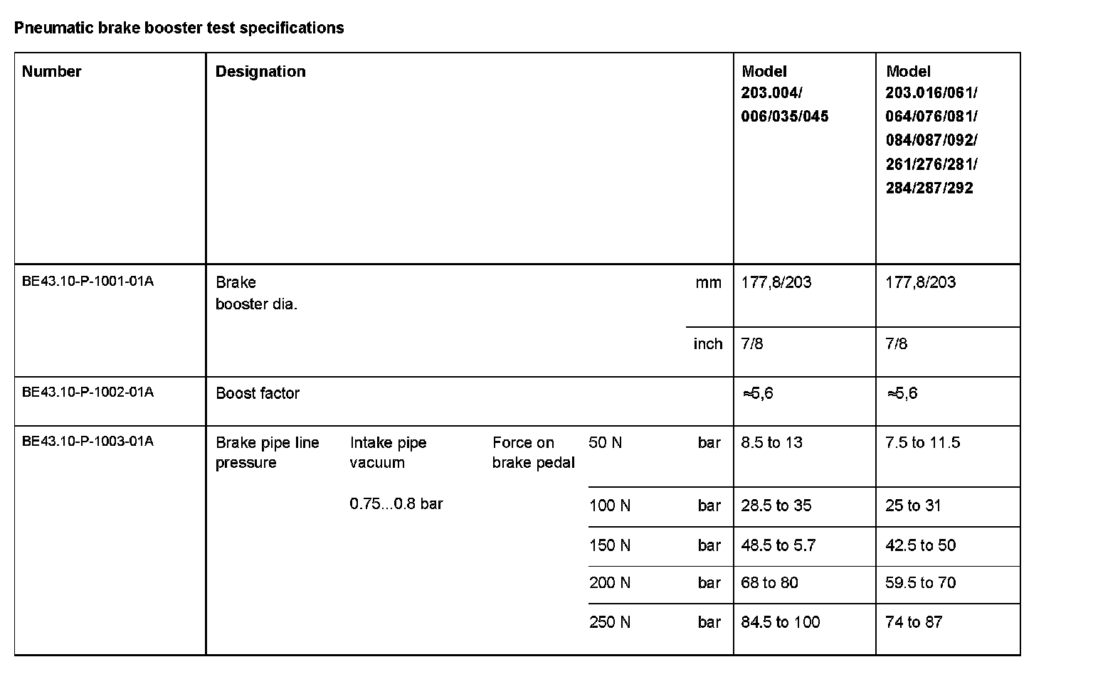 BE43.10-P-1000-01A Pneumatic brake booster test specificationsModification Notes: