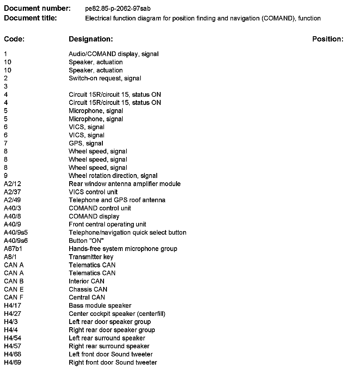 PE82.85-P-2062SAB Electrical Function Diagram For Position Finding and Navigation (COMAND), Function