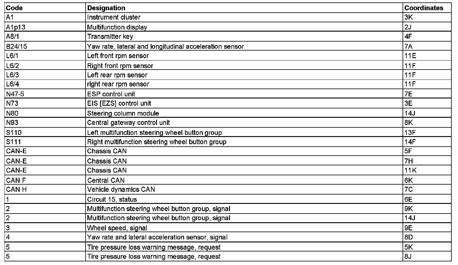 PE40.15-P-2051SAA Electrical Function Schematic For Tire Pressure Loss Warning (RDW) System