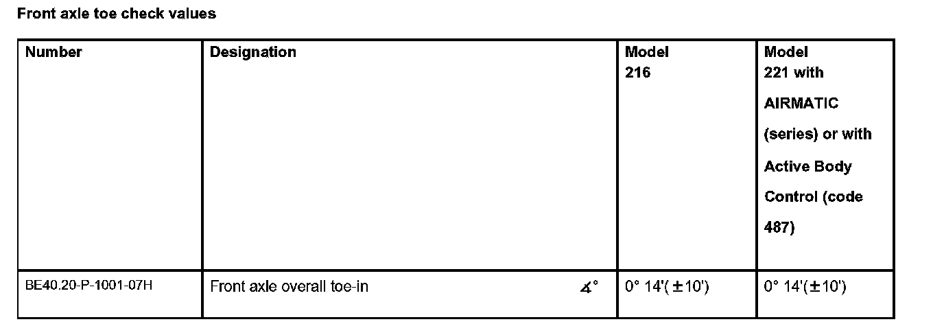 Front axle toe check values: