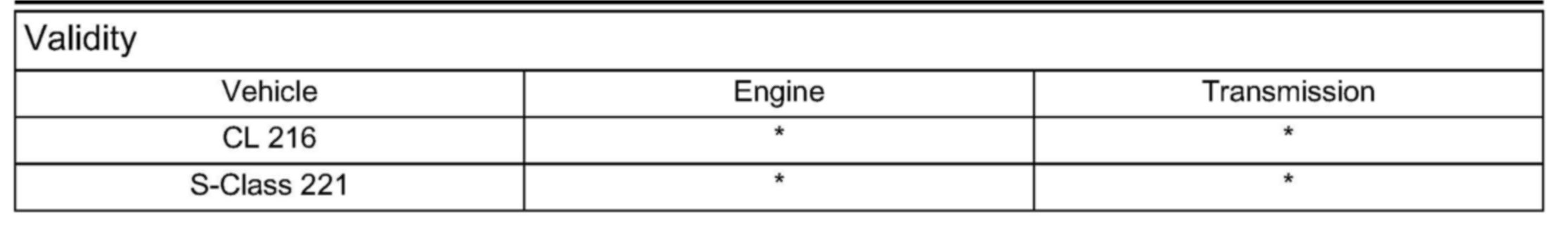 Validity Model 221, 216 as of model year 2010 (code 800)
