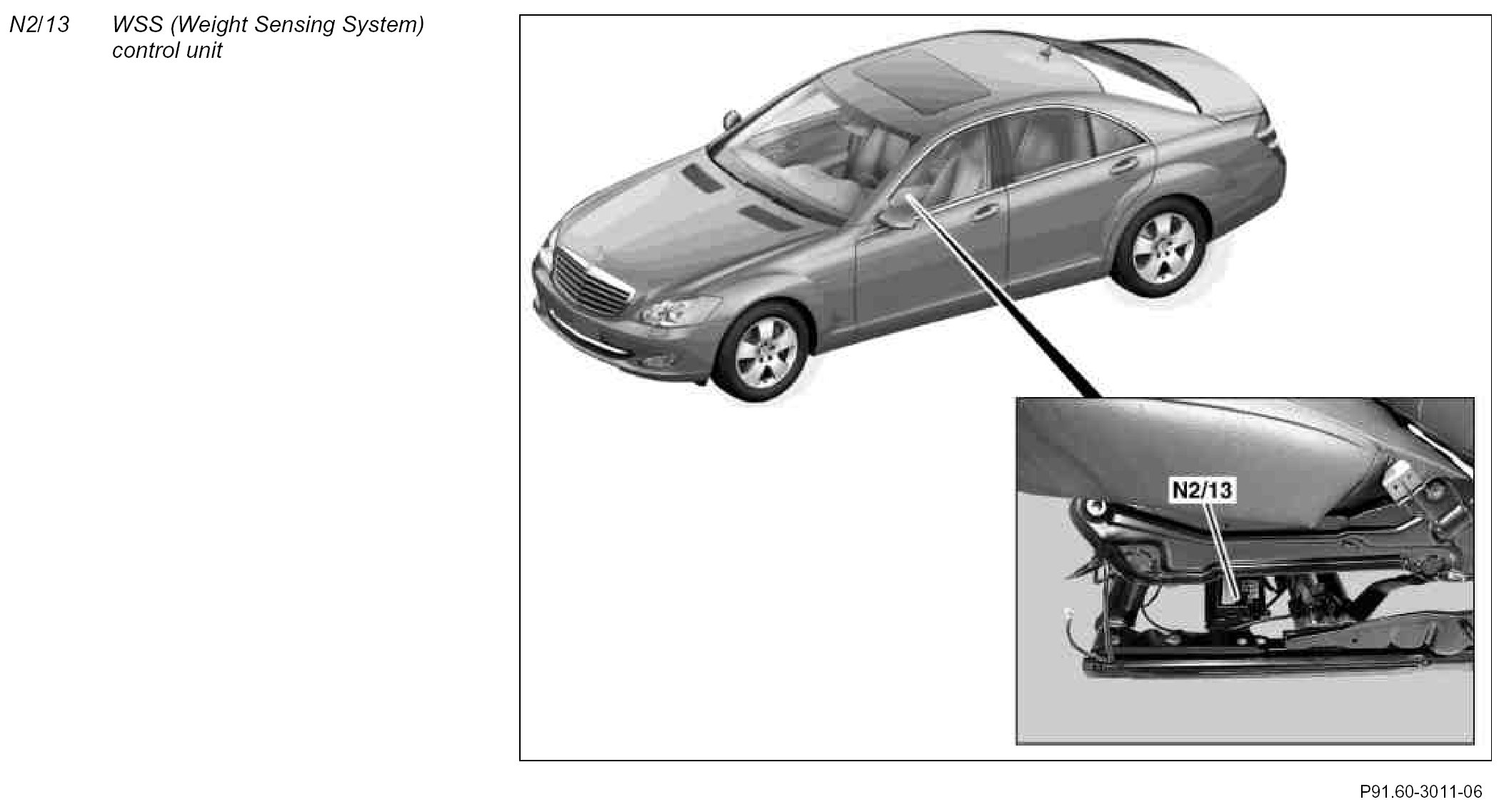 The WSS control unit determines the weight (person or child seat) on the front passenger seat. The weight is determined via the data from the WSS sensors.