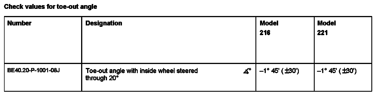 Test values for toe-out on turns: