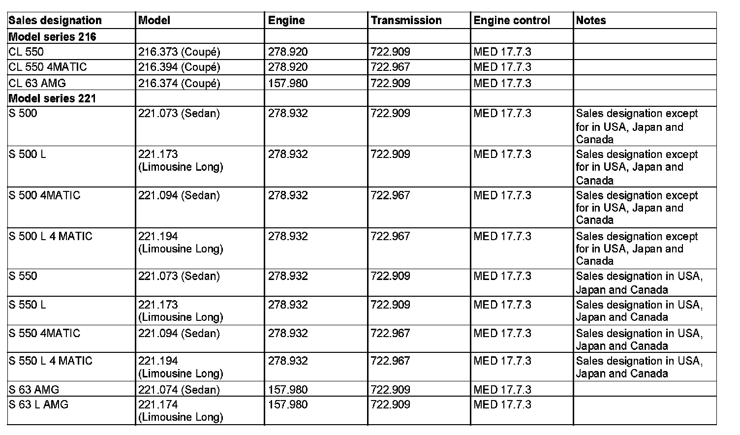 ENGINES 157.9 in MODEL 216.3, 221.0 /1