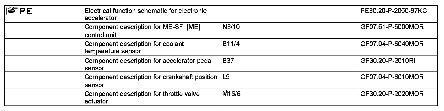 The electronic accelerator function (EFP) is integrated in the ME-SFI [ME] control unit (N3/10), and controls the opening angle of the throttle valve according to driver requests and operating conditions.