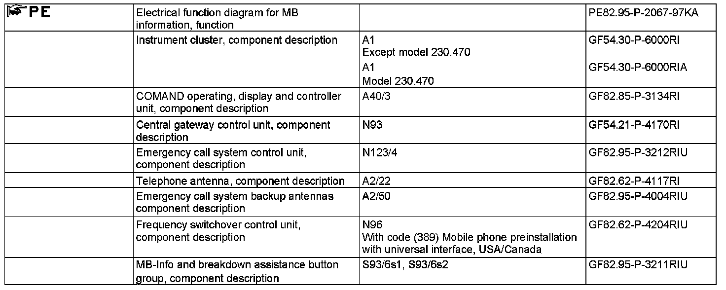 ^ An emergency call system control unit (N123/4) communication module authorized for the vehicle-related MB Info call service is configured ex-factory with the telephone number of the corresponding service provider