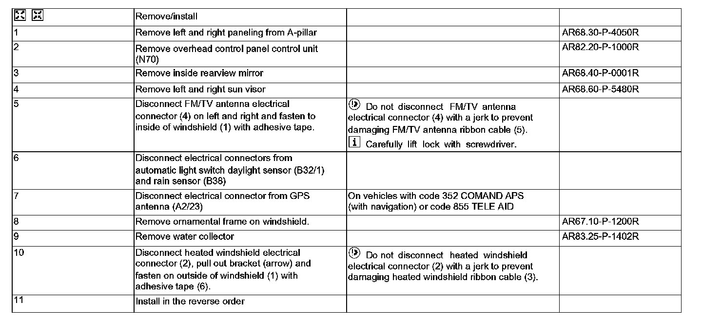 AR67.10-P-1050R Remove, Install Detachable Parts When Replacing Windshield