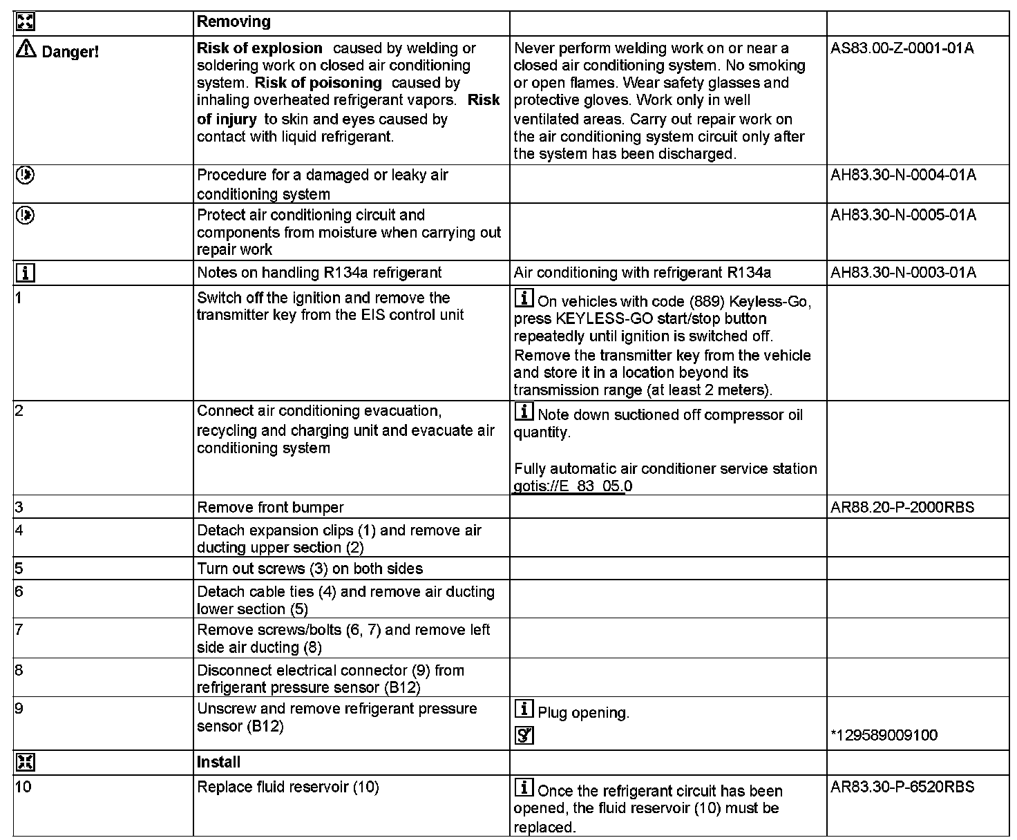 AR83.30-P-5430RBS Remove/install Refrigerant Pressure Sensor