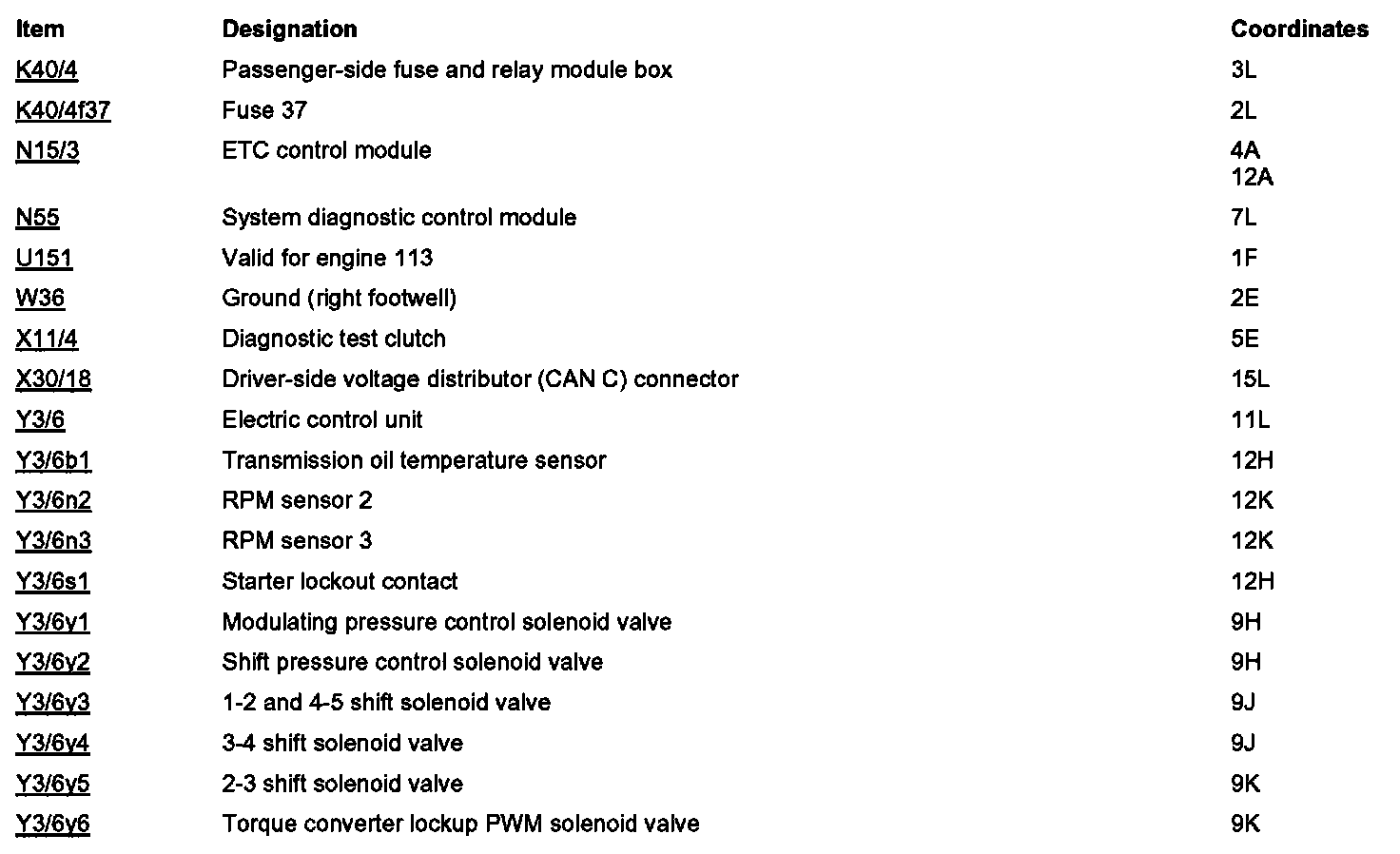 Component Locations: Component Location photographs can be found via their component names at the vehicle level. Component Locations