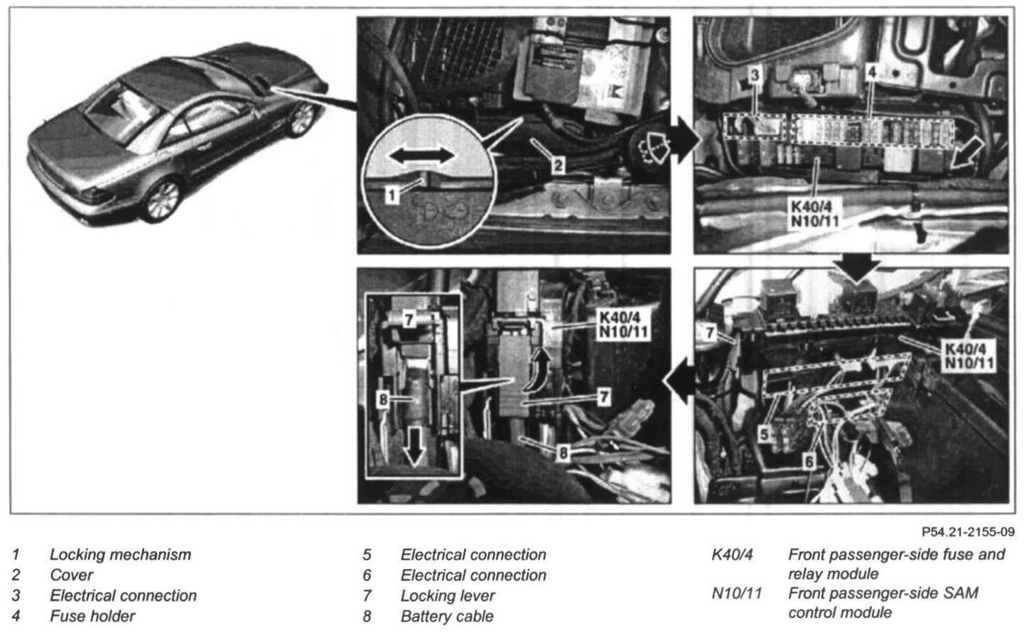 12 Remove front passenger-side SAM control module (N10/11) with front passenger-side fuse and relay module (K40/4)
