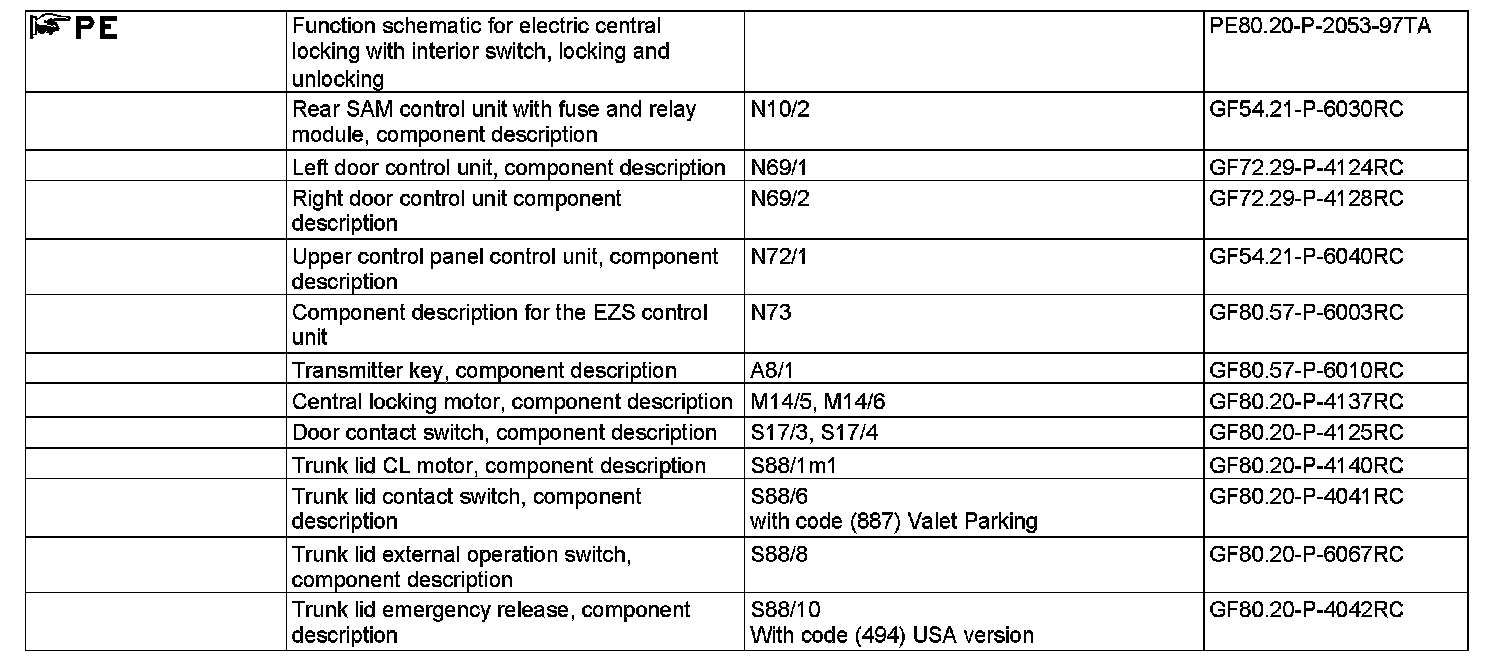 The trunk lid emergency opening function is also performed, when the trunk lid is locked with the trunk lid contact switch (S88/6) (with code (887) Valet Parking).