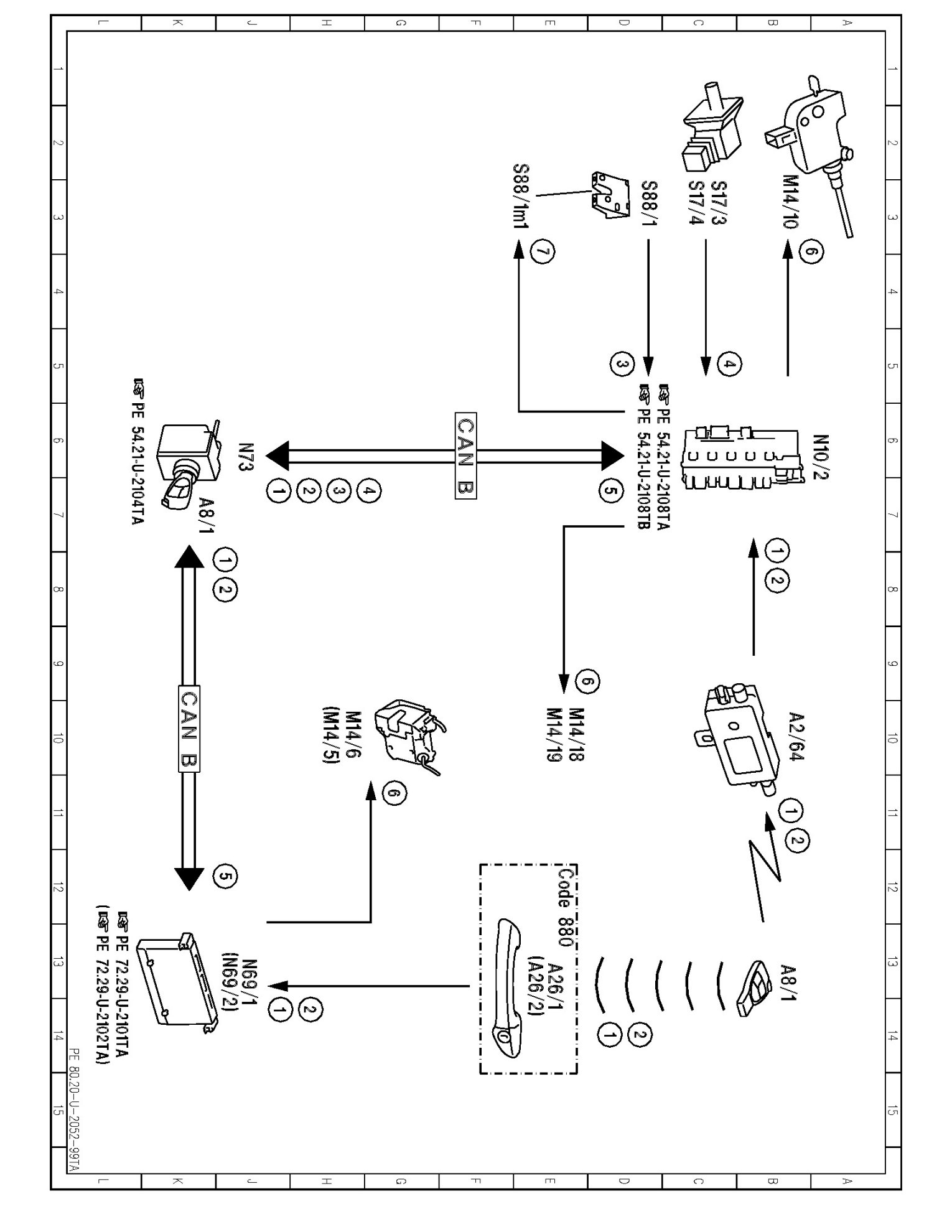 PE80.20-U-2052TA Electrical Function Diagram For Central Locking System Operation With Transmitter Key
