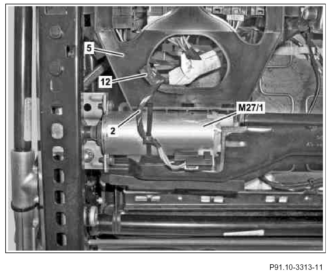 2. Disconnect cable tie (3) from left front seat fore/aft adjustment motor (M27/1) and remove from control unit holder (5).