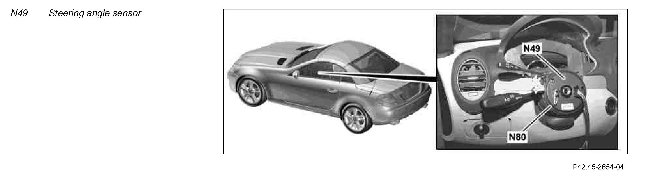 The steering angle sensor is integrated in the steering column tube module (N80).