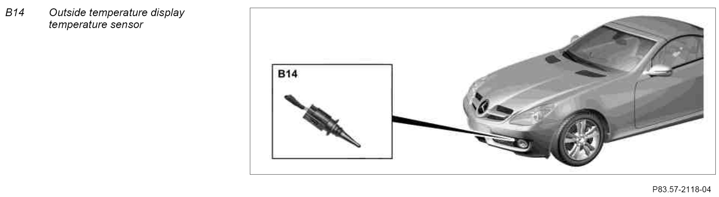 The outside temperature indicator temperature sensor measures the outside temperature. The driver SAM control unit with fuse and relay module (N10/1) reads in the temperature value.