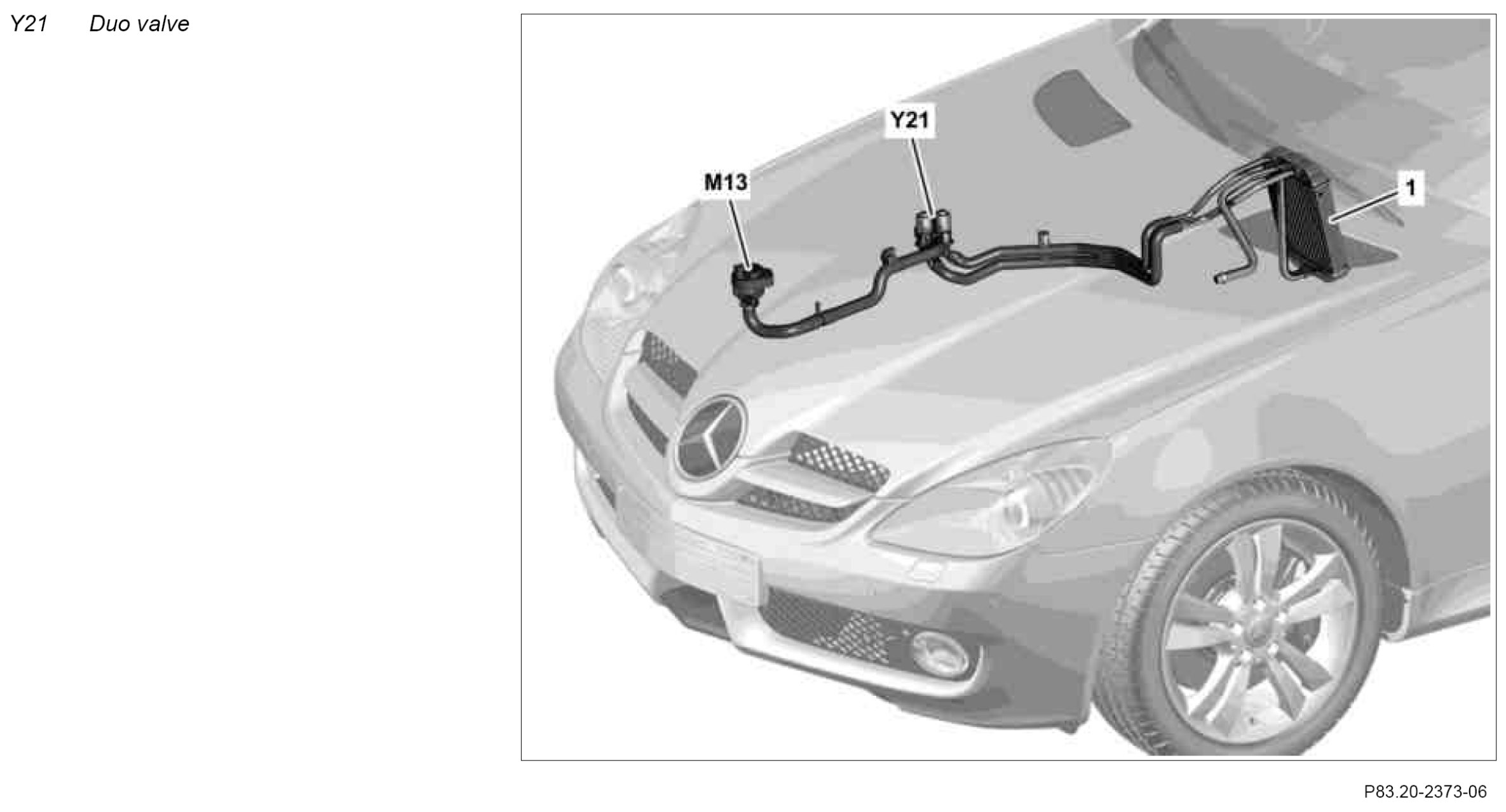 The duo valve regulates the coolant flow through the heater heat exchanger separately for the right and left side.