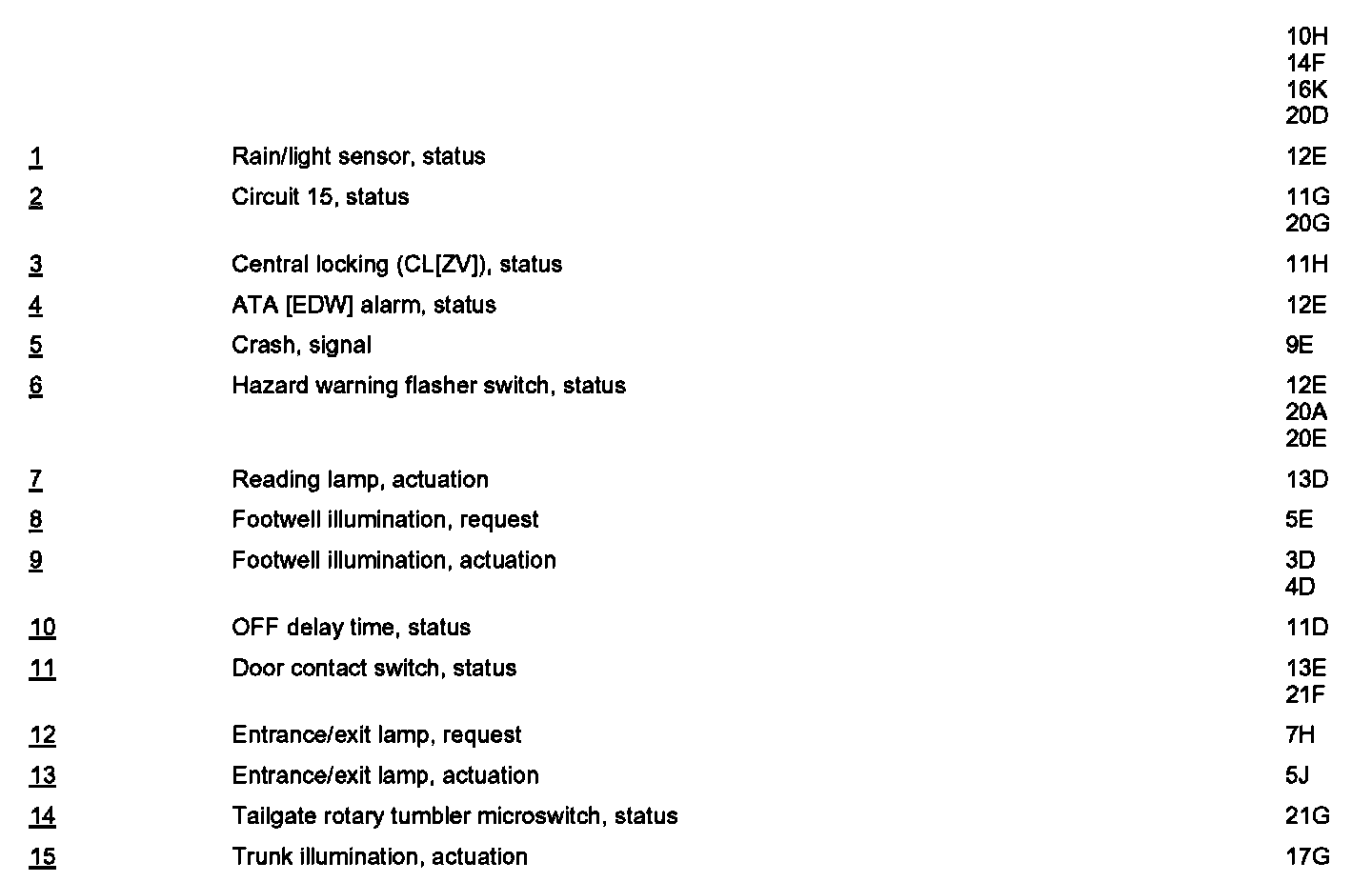 PE82.20-U-2052TA Electrical Function Schematic For Automatic Interior Lights Control