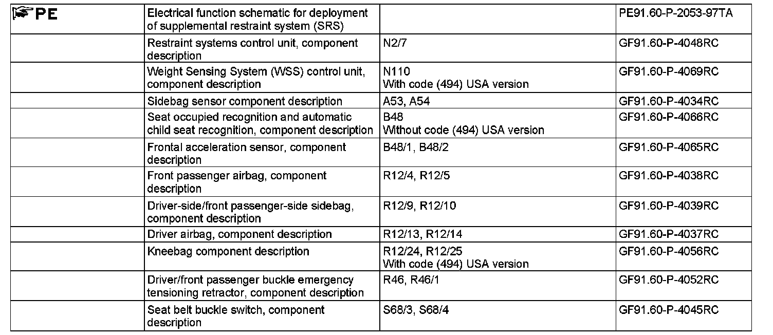 - Front passenger kneebag squib (R12/24) (for code (494) USA version)