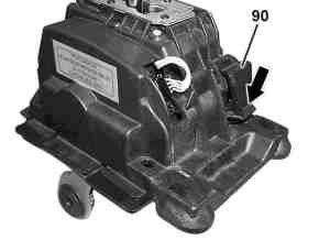 To do this, the stowage compartment in the center console must be unclipped and, using a suitable tool, the guide located underneath pressed onto the lever (arrow). The selector lever position "P" lock is released via a bolt in the lock solenoid valve.