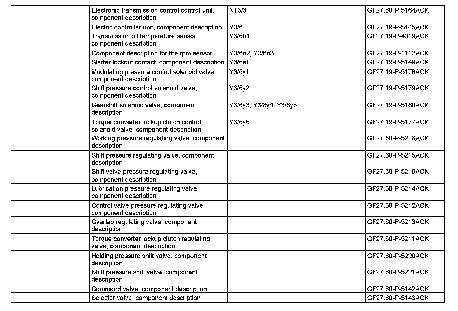 In order to guarantee a safe driving condition and in order to avoid damage to the automatic transmission, the electronic transmission control control unit (N15/3) switches to limp-home mode. In the process a fault code assigned to a fault is stored in the fault memory and the engine diagnosis indicator lamp (A1e58) (except code 494 USA version) or the CHECK ENGINE engine indicator lamp (A1e26) (with code 494 USA version) lights up in the instrument cluster (A1). All solenoid and regulating valves are in the de-energized condition.