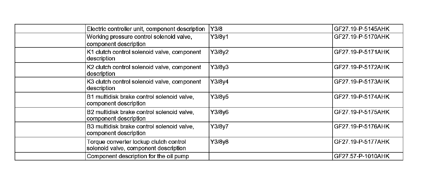 - K1 clutch control solenoid valve (VGS) (Y3/8y2)