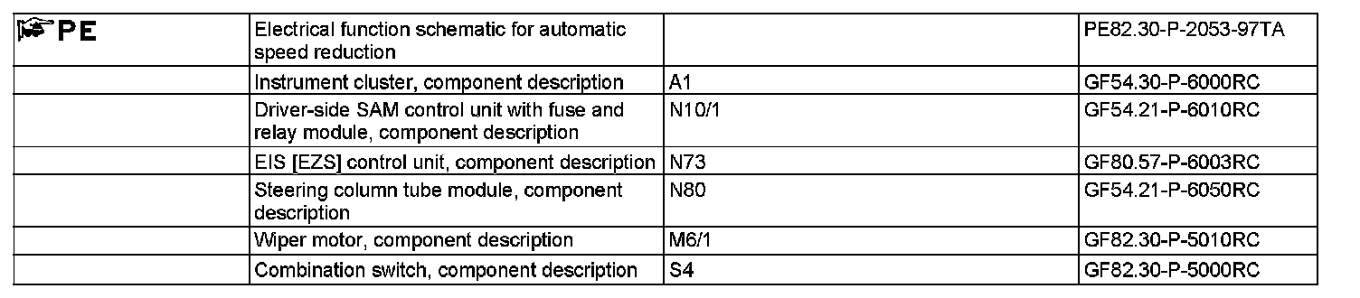 The status of the combination switch is read in by the steering column tube module (N80) and sent over the interior CAN to the driver SAM control unit. This evaluates the signals and actuates the wiper motor accordingly.