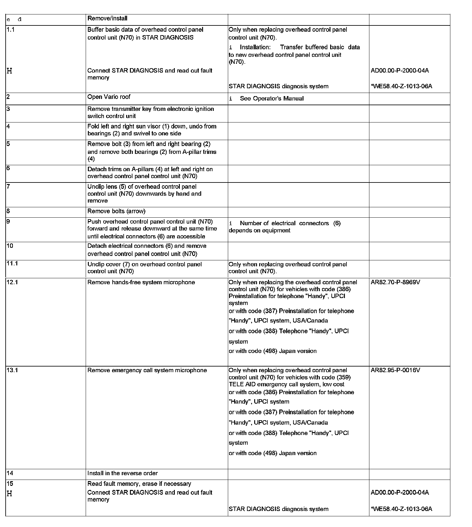 AR82.20-P-1000V Remove/install Overhead Control Panel Control Unit