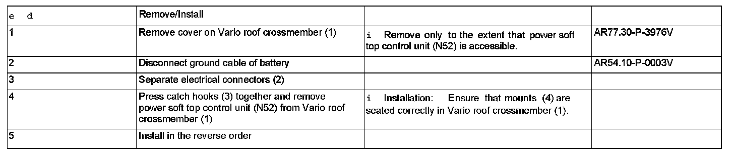 AR77.39-P-3605V Remove/install Roll Bar (RB)/soft Top Mechanism Control Unit
