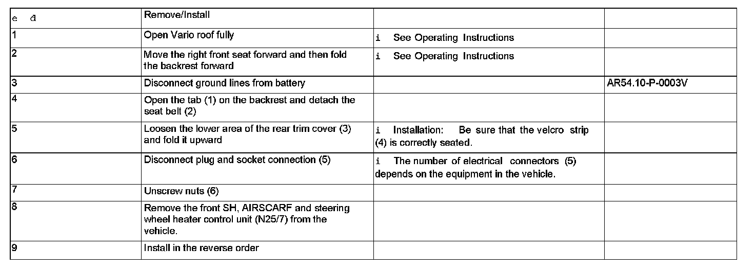 AR91.30-P-0032V Removing/installing Heated Seats, Head Area Ventilation And Steering Wheel Heater Control Unit
