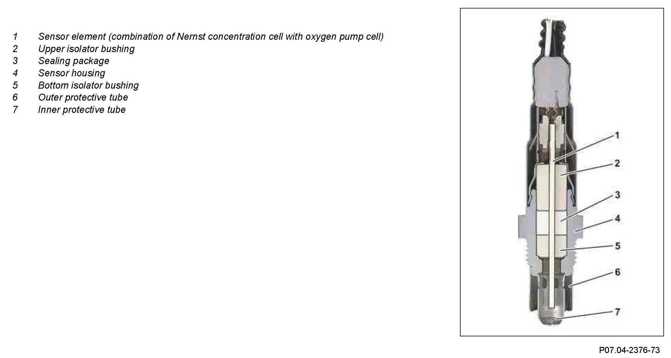 In combination with the control electronics integrated with the ME-SFI control unit (N3/10), the wideband oxygen sensor is able to measure accurately over a large lambda range ( Lamda0.7 to 4.0).