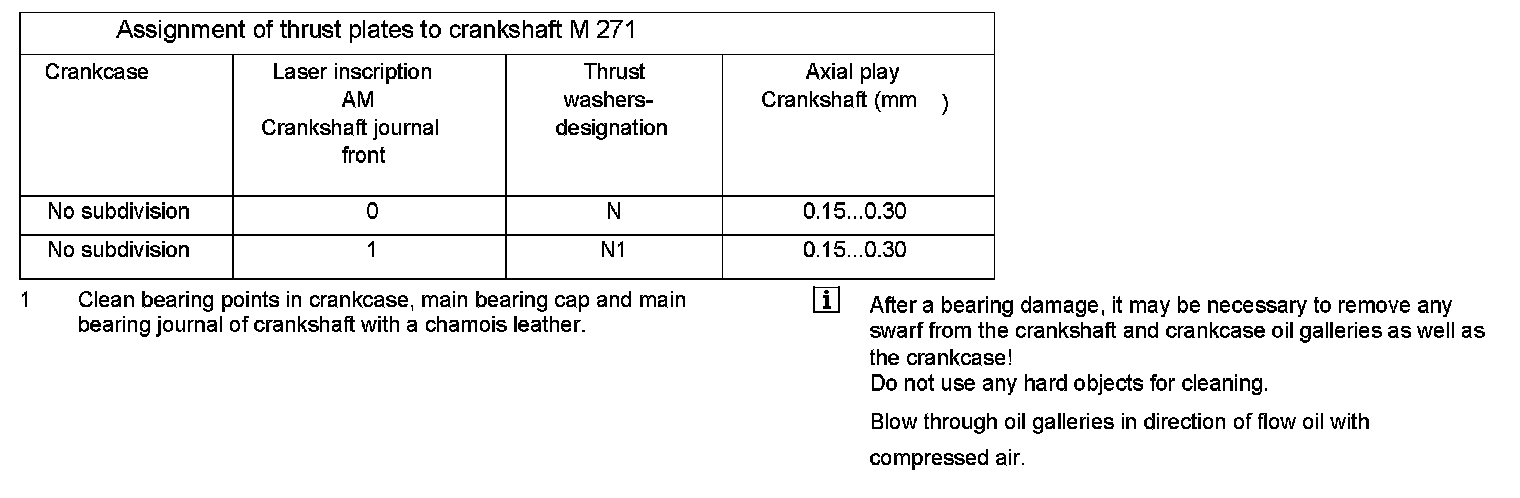 After a bearing damage, it may be necessary to remove any swarf from the crankshaft and crankcase oil galleries as well as the crankcase! Do not use any hard objects for cleaning. Blow through oil galleries in direction of flow oil with compressed air.