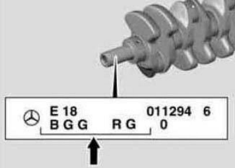 The initial letters of the particular colors are engraved on the journal of the crankshaft (arrow).