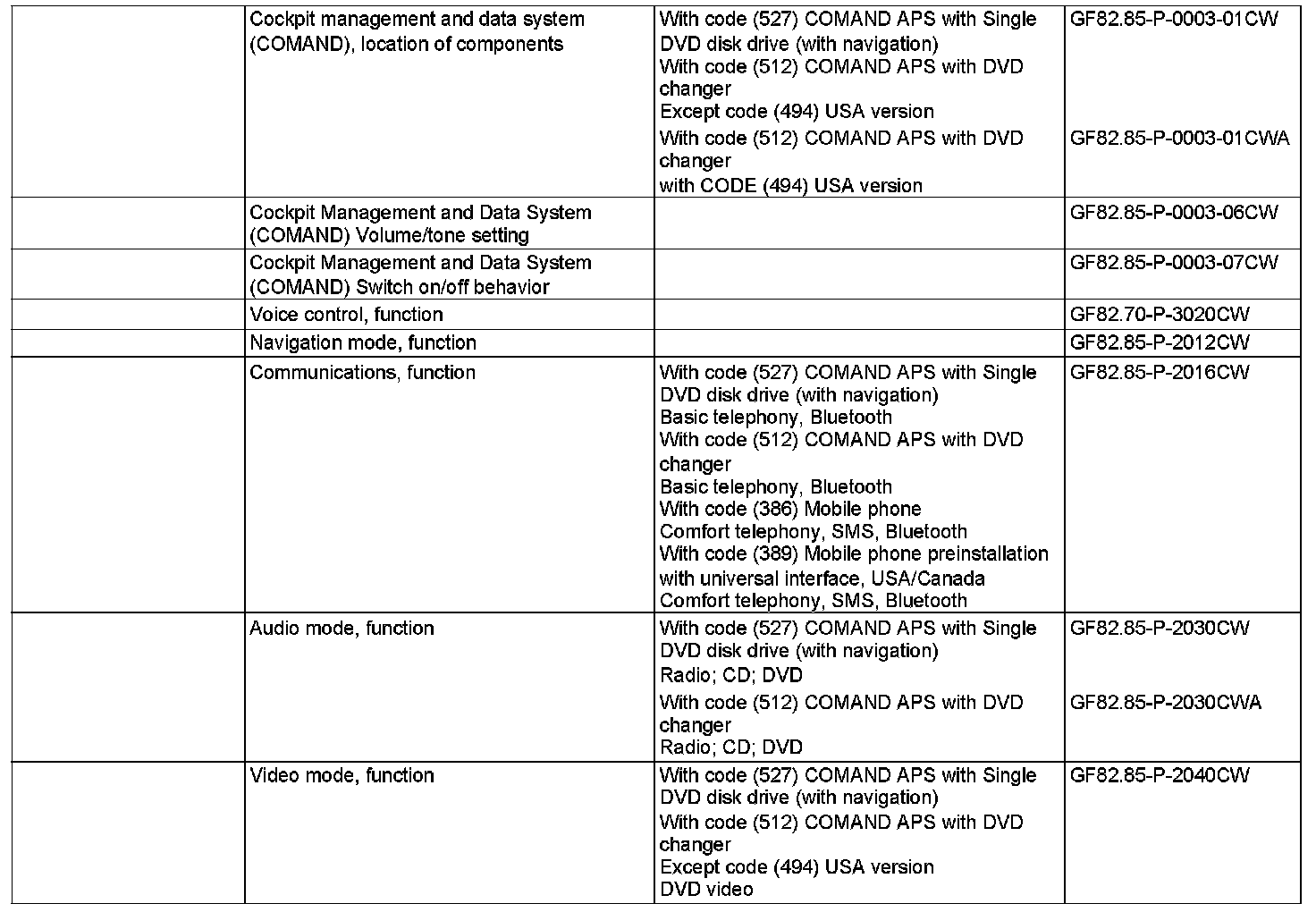 - with CODE (527) COMAND APS with single DVD drive (with navigation)