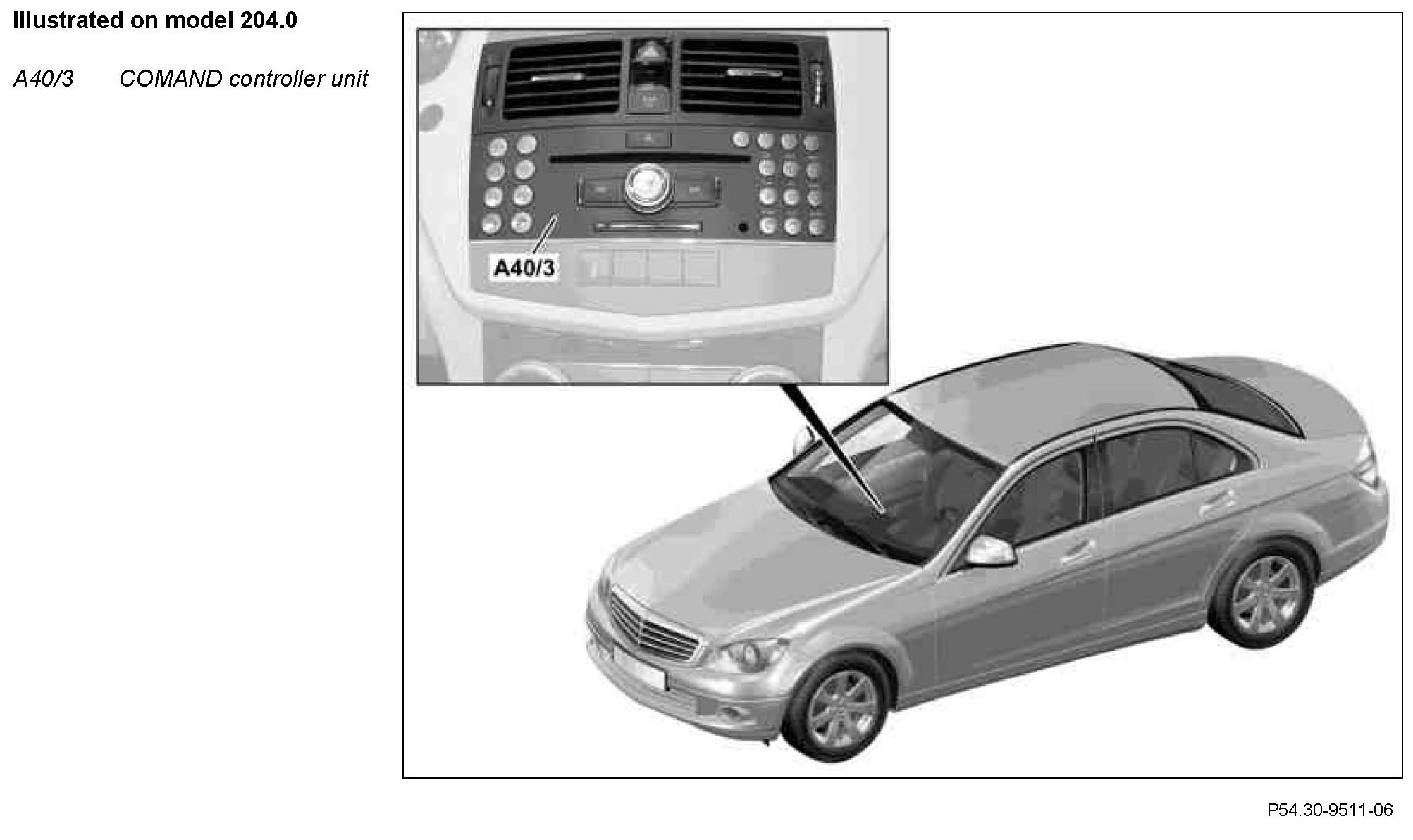 The navigation processor is integrated into the COMAND controller unit. As of an active COMAND controller unit, the navigation system compares the GPS data received by the multifunction antenna (A28/11) against the data for the vehicle position and alignment, and against map data. This determines the position of the vehicle. This is then shown on a map on the Audio/COMAND display.