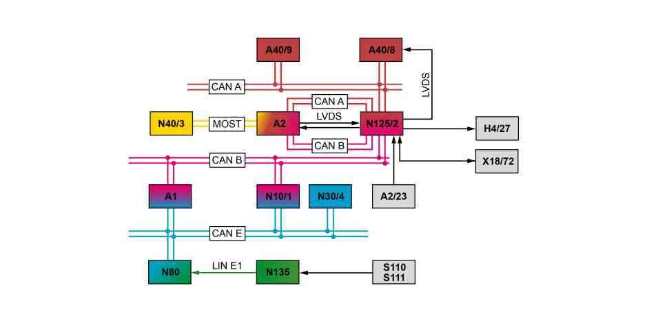 The navigation 20 control unit transmits the signals for the displays on the Audio/COMAND display via an LVDS line to the Audio/COMAND display.