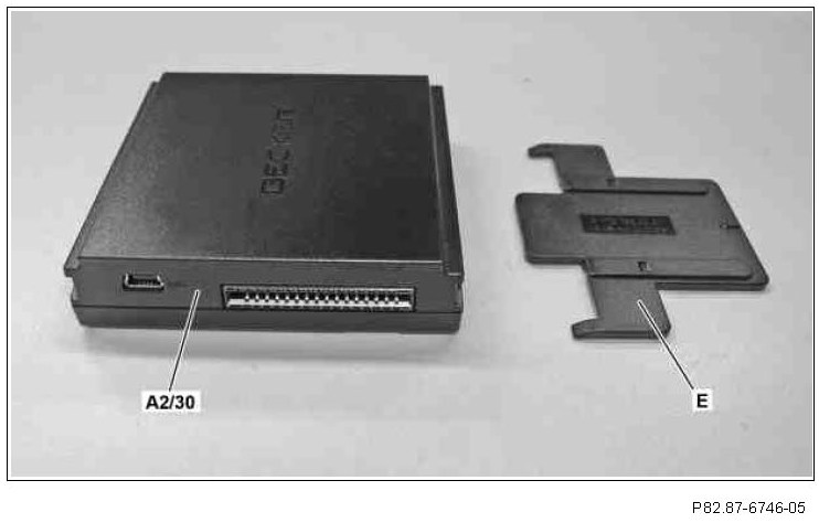 The navigation module can be ejected from the navigation module cradle by pressing the release pin (slide). The release pin can be removed. The release pin can be ordered as a replacement part via Mercedes-Benz Accessories.
