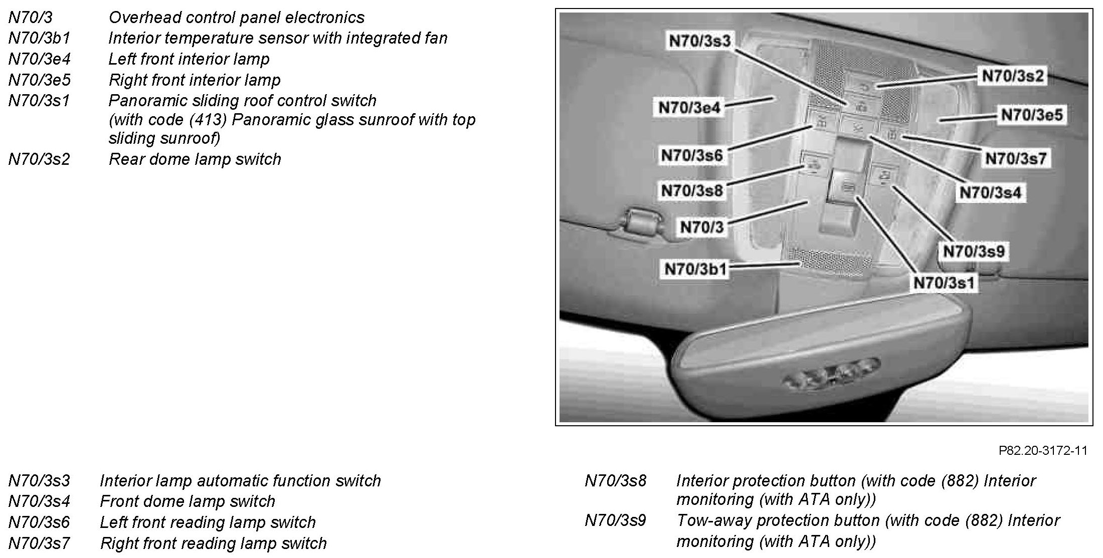 The electronic overhead control panel is a subscriber of the wiper/ inside rearview mirror LIN (LIN 2).