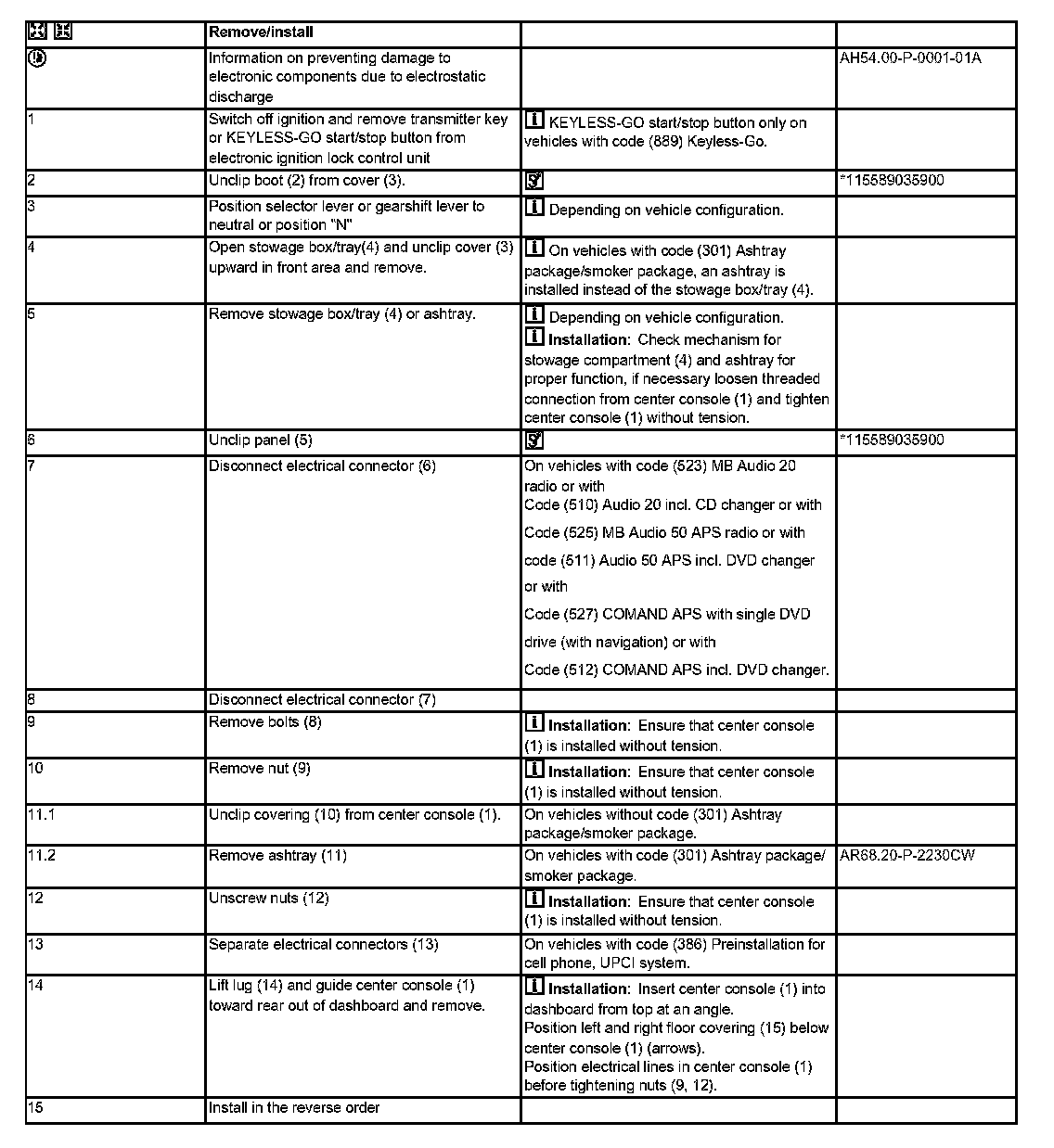 AR68.20-P-2000CW Remove/install Center Console