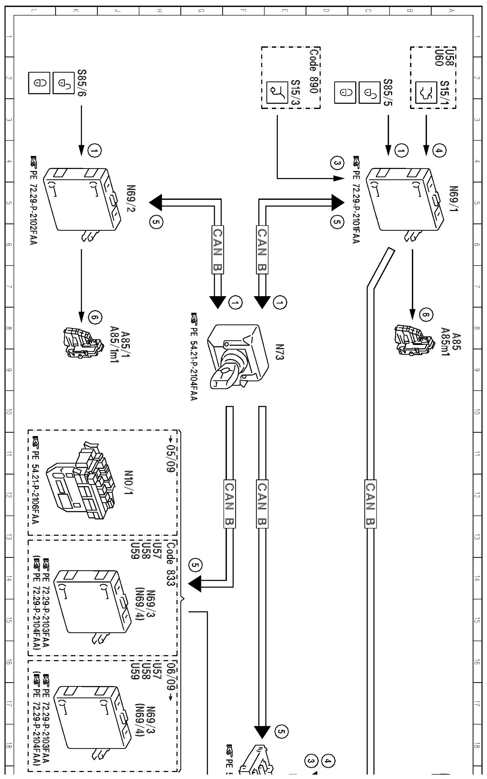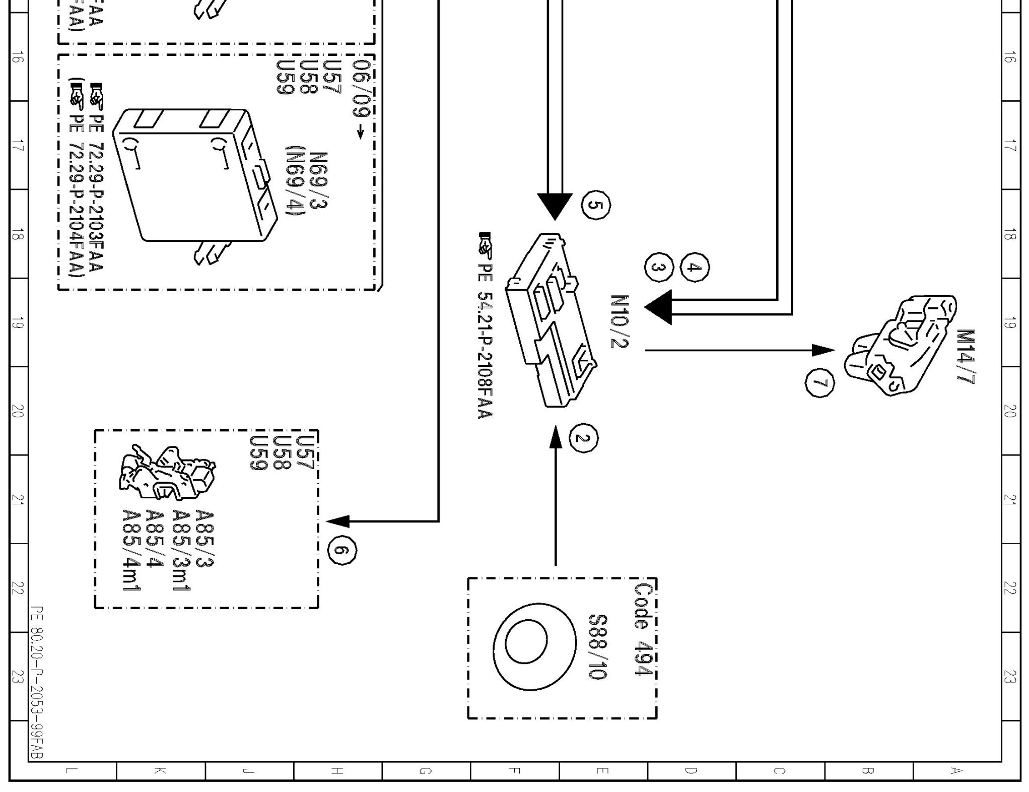 PE80.20-P-2053FAB Electrical Function Schematic For Central Locking With Interior Switch, Locking And Unlocking