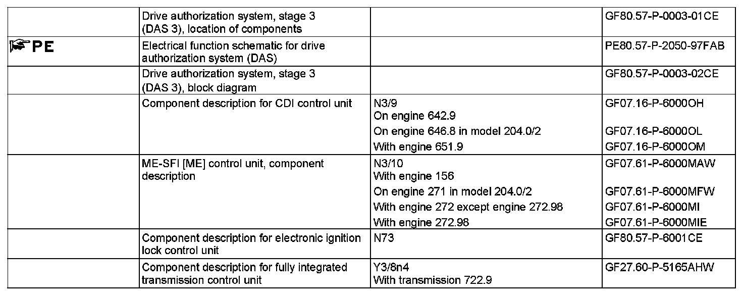 Circuit 15 is actuated by turning transmitter key to position "C". The status of circuit 15 is output to chassis CAN (CAN E) and interior CAN. Power-intensive consumers are supplied by circuit 15X. Parallel to this, an encrypted DAS 3 query is sent to the ME control unit or CDI control unit and the fully integrated transmission control unit.
