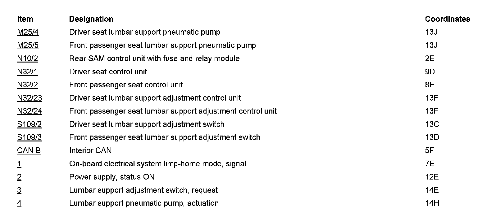 PE91.29-P-2051FAA Electrical Function Schematic For Lumbar Support Adjustment
