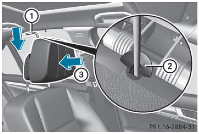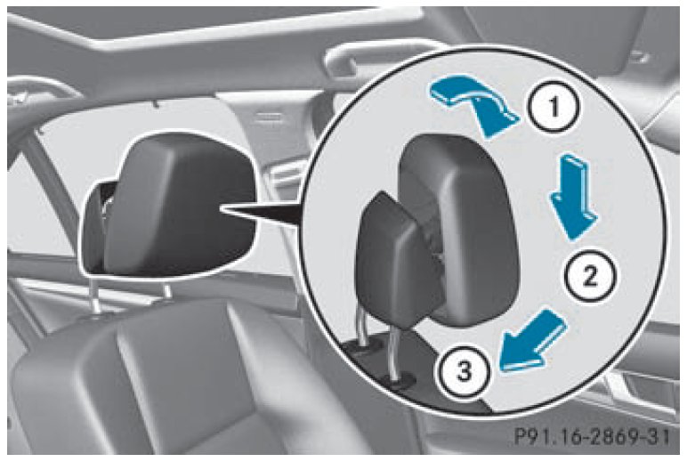 Resetting the NECK-PRO head restraints requires a lot of strength. If you have difficulty resetting the NECK-PRO head restraints, have this work carried out at a qualified specialist workshop, e.g. an authorized Mercedes-Benz Center.