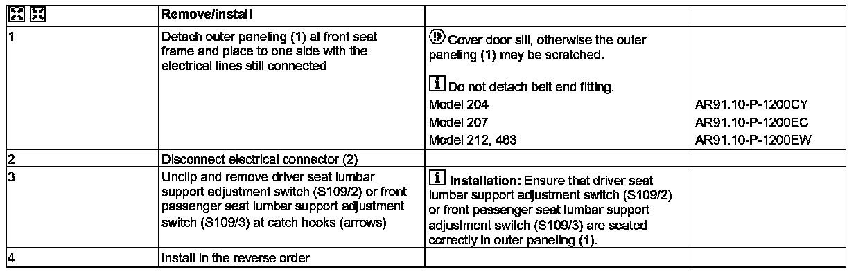 AR91.25-P-1435CY Remove/Install Backrest Lumbar Support Switch