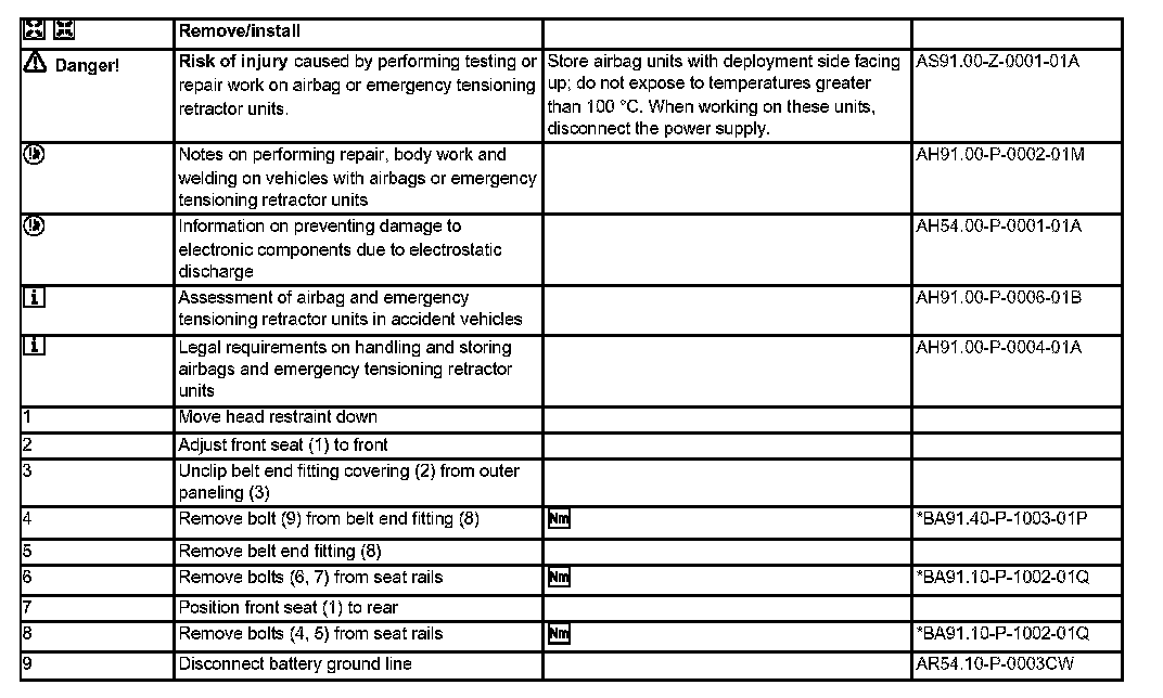 AR91.10-P-1000CW Remove/Install Front Seat