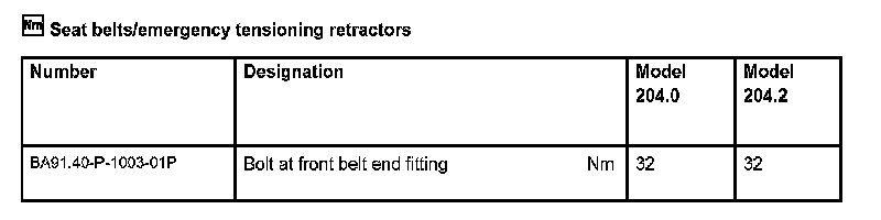 Seat Belts/Emergency Tensioning Retractors: