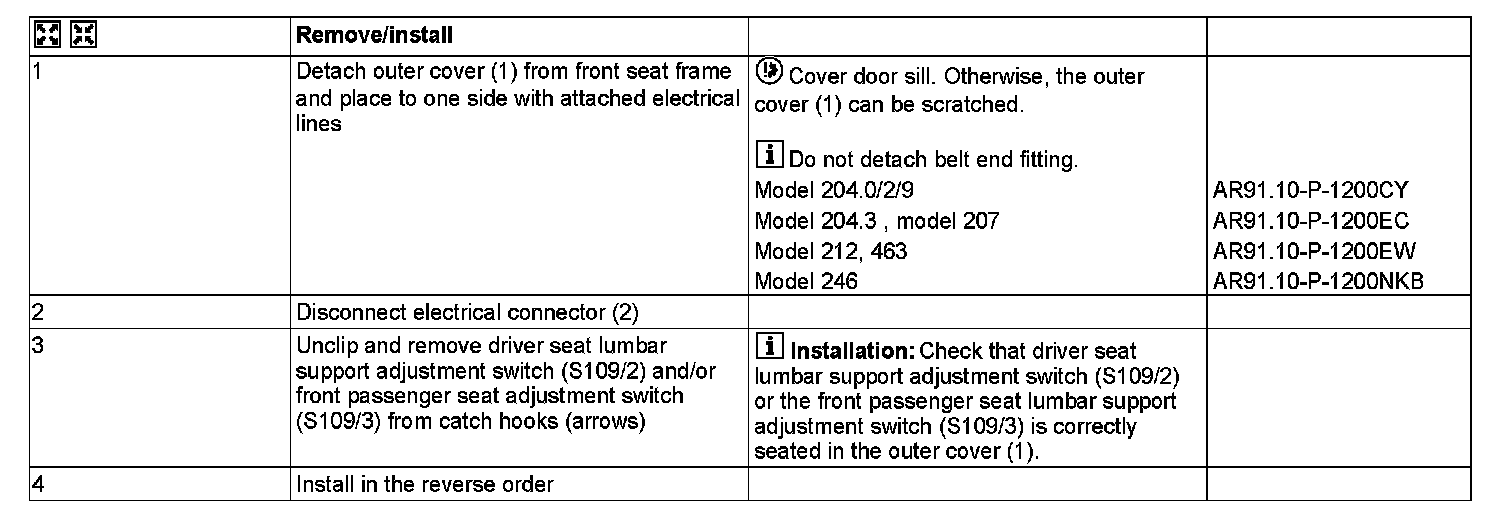 AR91.25-P-1435CY Remove/Install Backrest Lumbar Support Switch