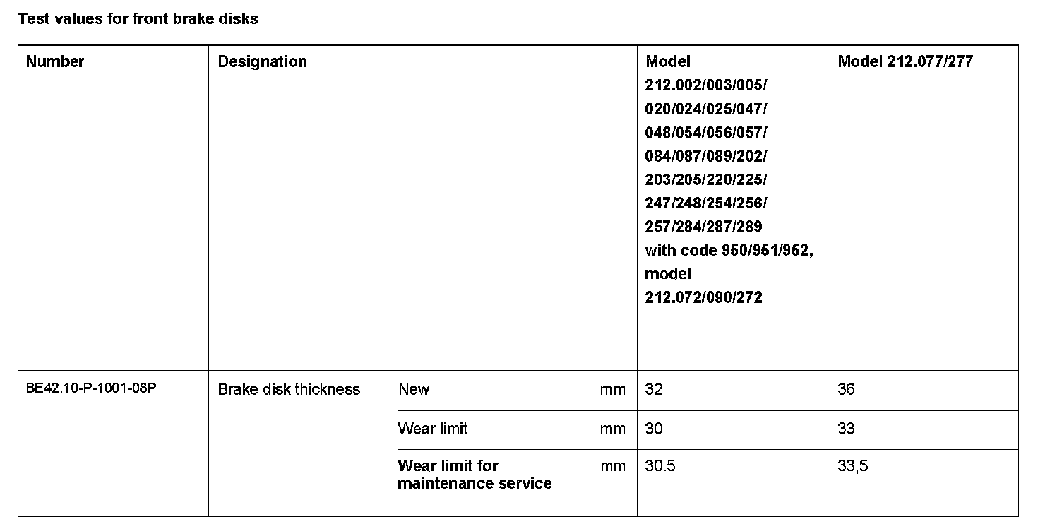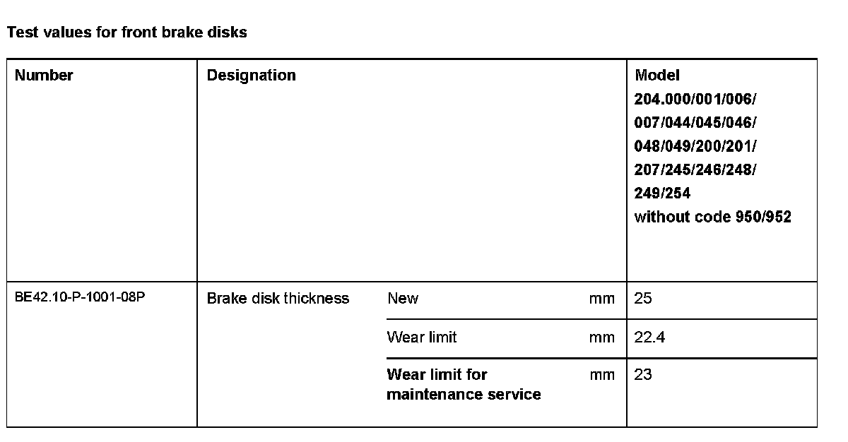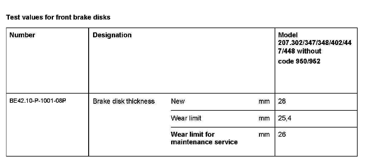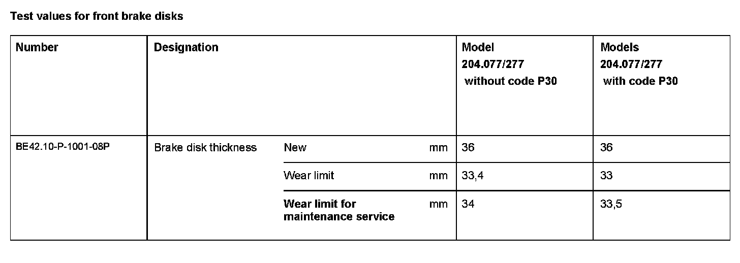 BE42.10-P-1000-08P Test values for front brake discsTest Values For Front Brake Disks: