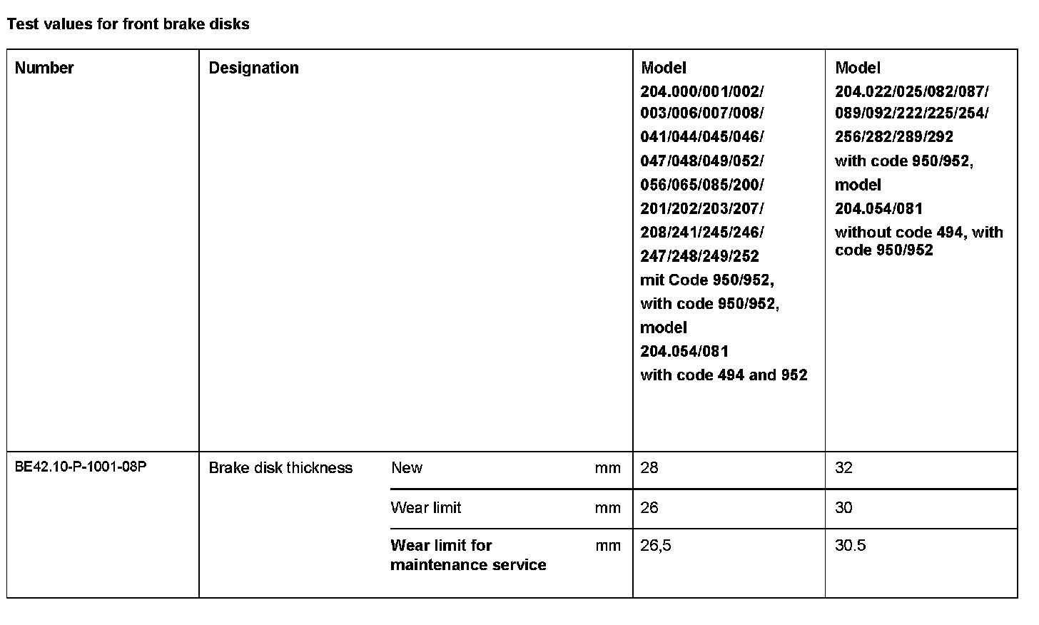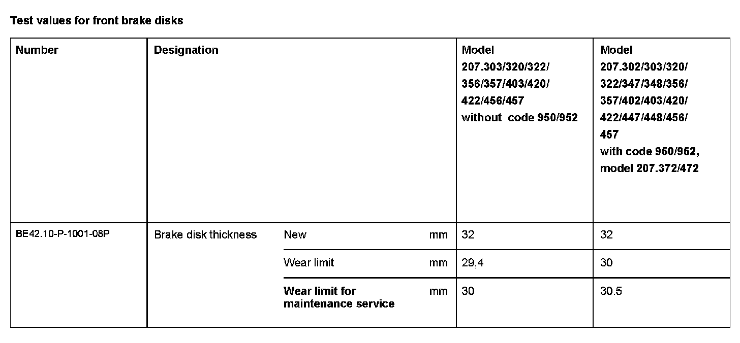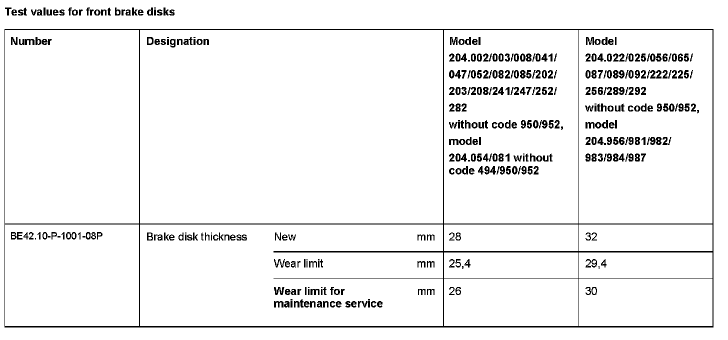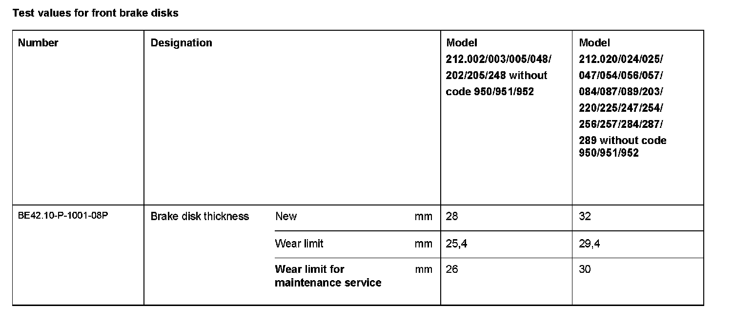 BE42.10-P-1000-08P Test values for front brake discsTest Values For Front Brake Disks: